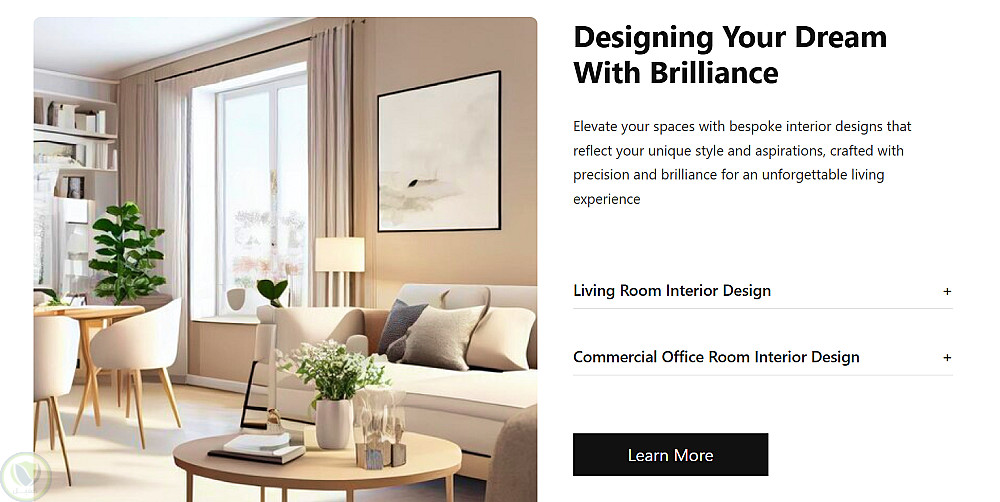 موقع تصميم داخلي احترافي – صفحة عرض خدمات التصميم الداخلي