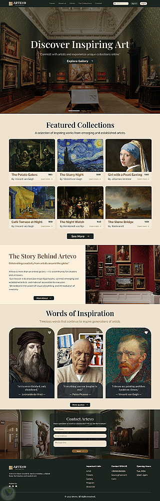 Artevo | تصميم واجهة موقع معرض فني (Art Gallery Website Design)