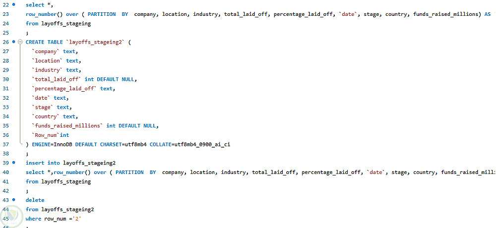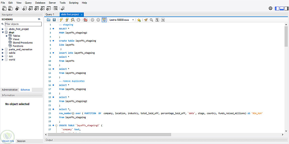 يهدف المشروع إلى بناء قاعدة بيانات تحليلية لبيانات تسريحات الموظفين في الشركات العالمية، مع تطبيق عمليات تنظيف وتحضير البيانات (Data Cleaning & Staging) باستخدام لغة SQL.
