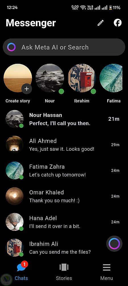 - قوائم منظمة: قوائم الشات، القصص، الأصدقاء، الرسائل المؤرشفة وغيرها.