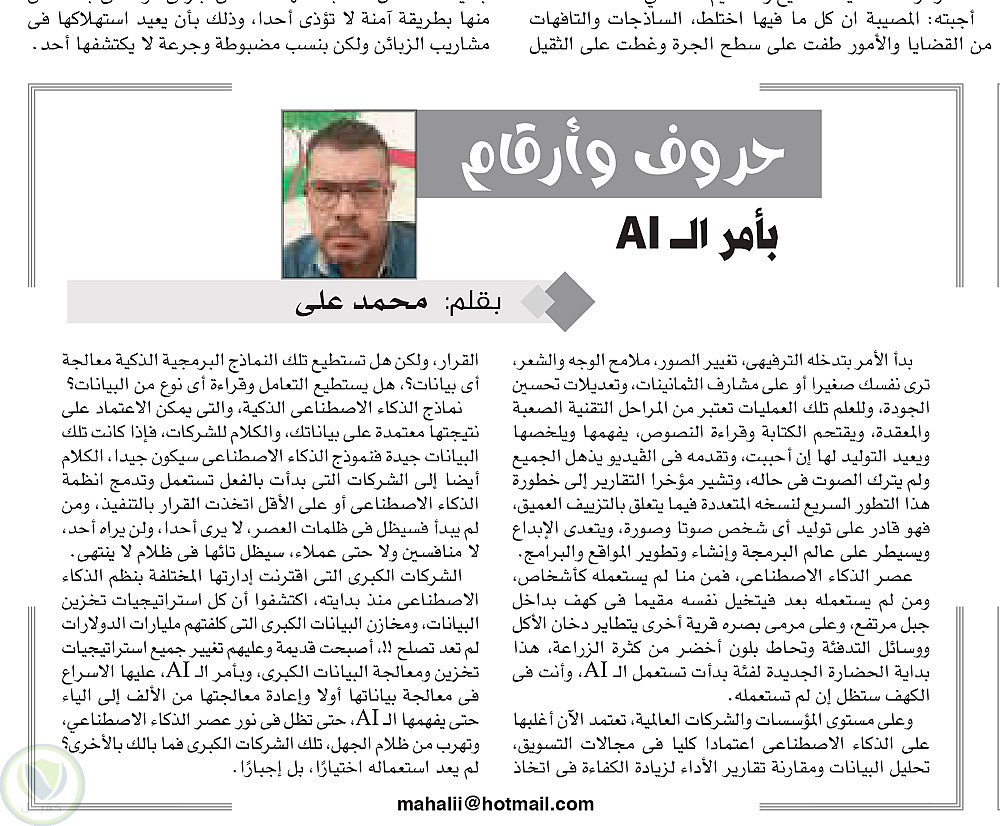 كتابة مقال بعنوان حروف وأرقام بعنوان بأمر الـ ai