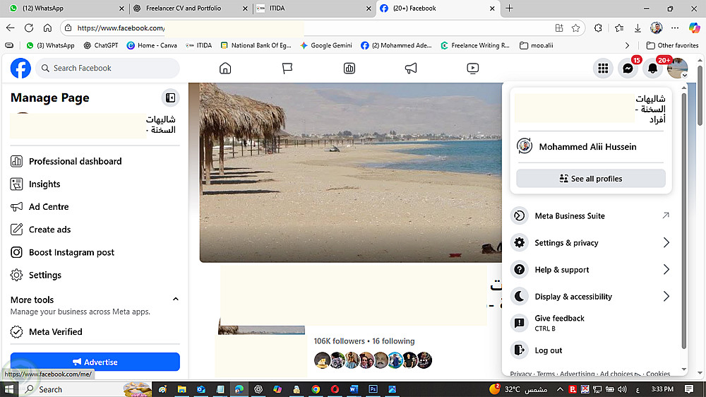 إدارة صفحة لحجز الوحدات السياحية على فيسبوك