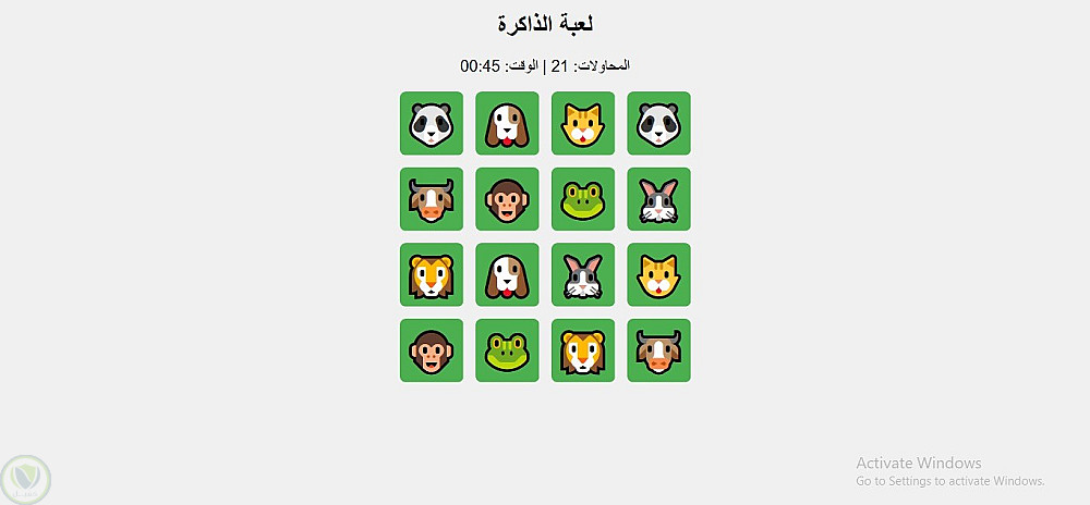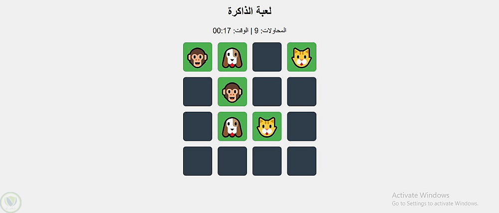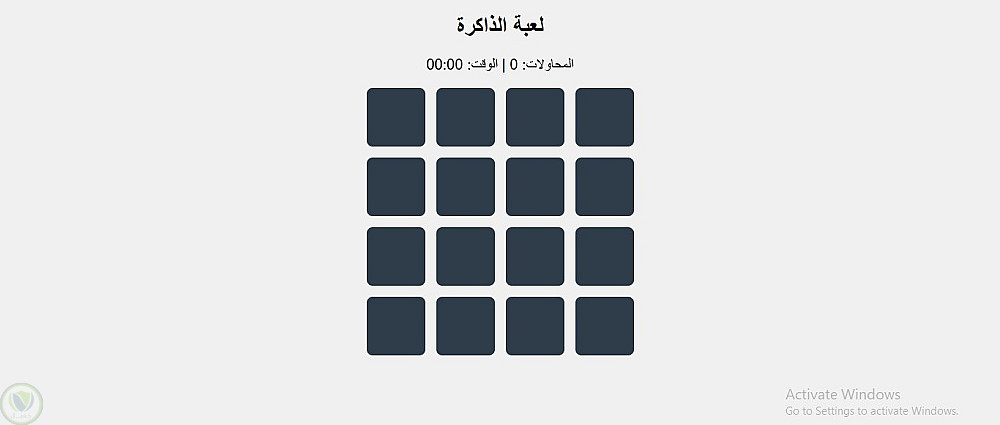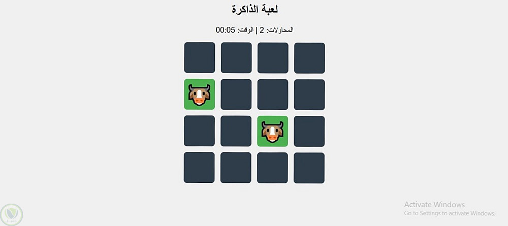 لعبة الذاكرة التفاعلية بلغة JavaScript