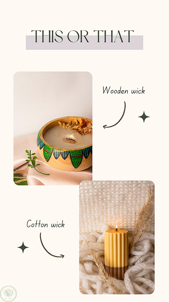 ده نموذج من تصميم بوست لل story انستجرام هدفه تشجيع الناس على التفاعل و معرفه اكتر نوع ببحبوا فى الفتائل للشموع بين فتيل القطن أو فتيل الخشب. التصميم بسيط و رسالته واضحه بطريقه بسيطه و جذابه