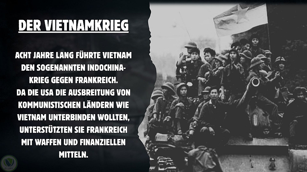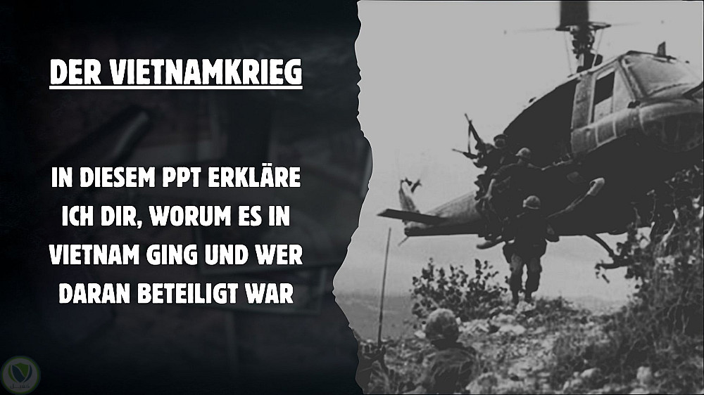 قمت بإعداد وتصميم عرض تقديمي باللغة الألمانية بعنوان „Der Vietnamkrieg“ (حرب فيتنام)، يشرح الأحداث التاريخية والسياسية للحرب بطريقة أكاديمية مبسطة ومنظمة بصريًا.