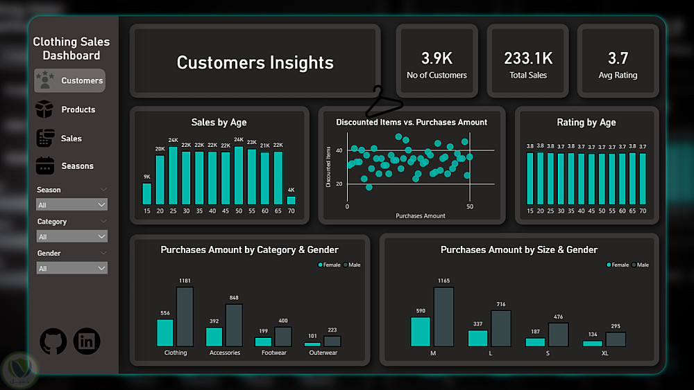 لوحة بيانات (Dashboard) احترافية لتحليل مبيعات الملابس باستخدام Power BI و Figma