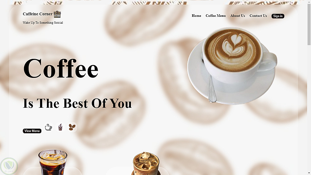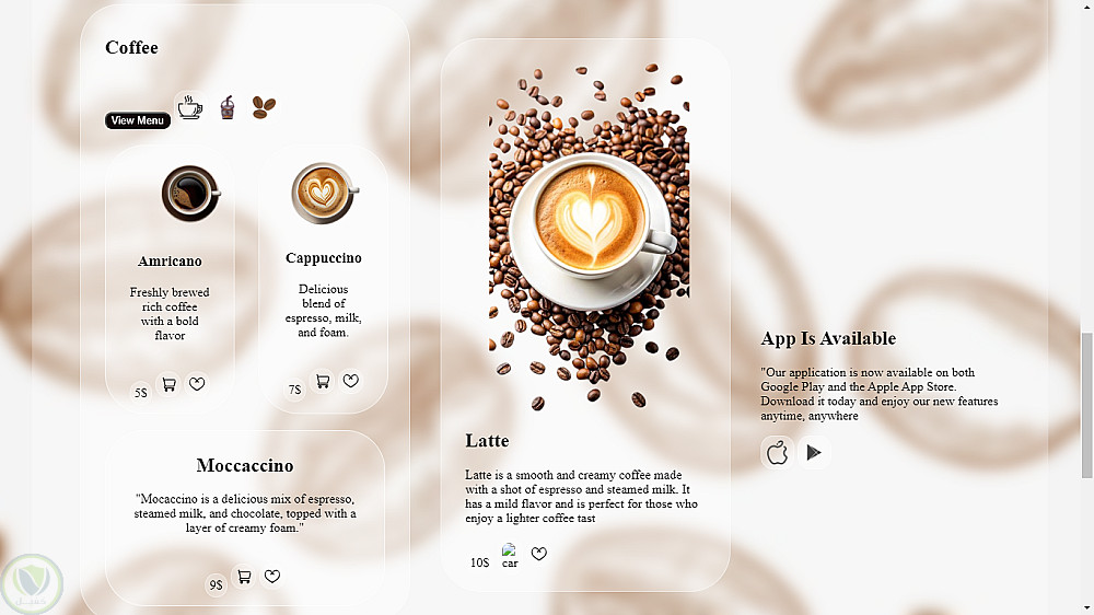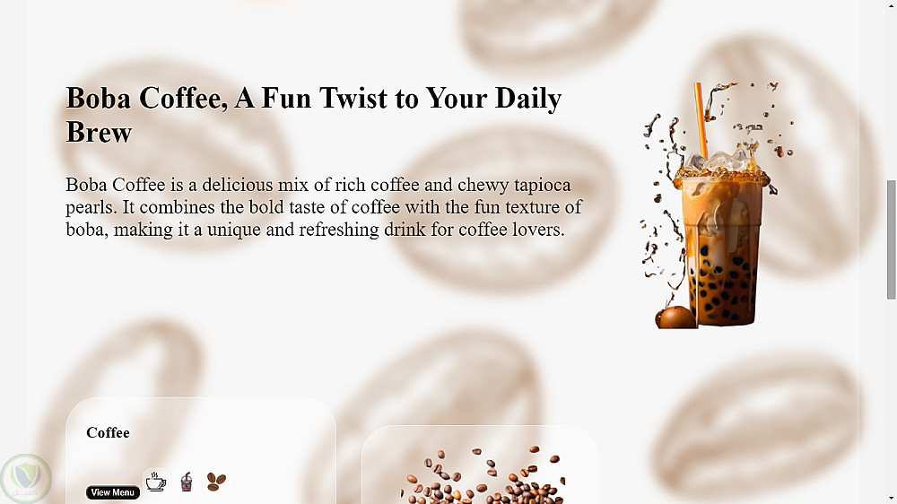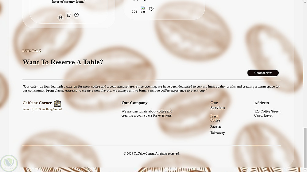 التصميم متجاوب (Responsive) ويعمل بسلاسة على جميع الأجهزة، مع مراعاة تناسق الألوان والخطوط ليعكس هوية الكافيه.