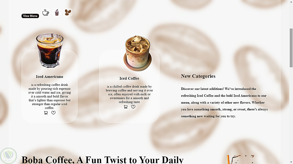تم تصميم وتطوير صفحة هبوط (Landing Page) خاصة بكافيه بستايل عصري وبسيط باستخدام HTML و CSS فقط.