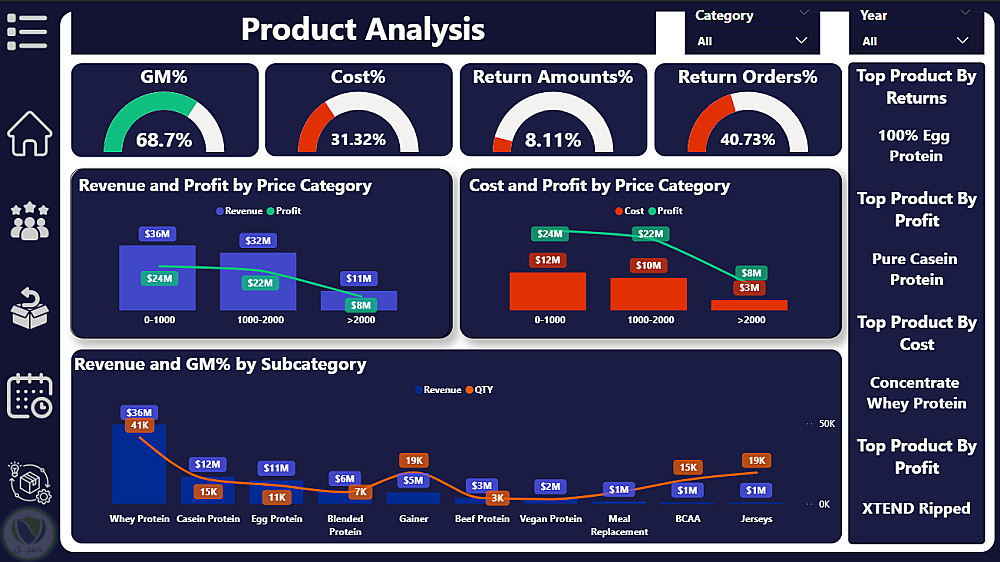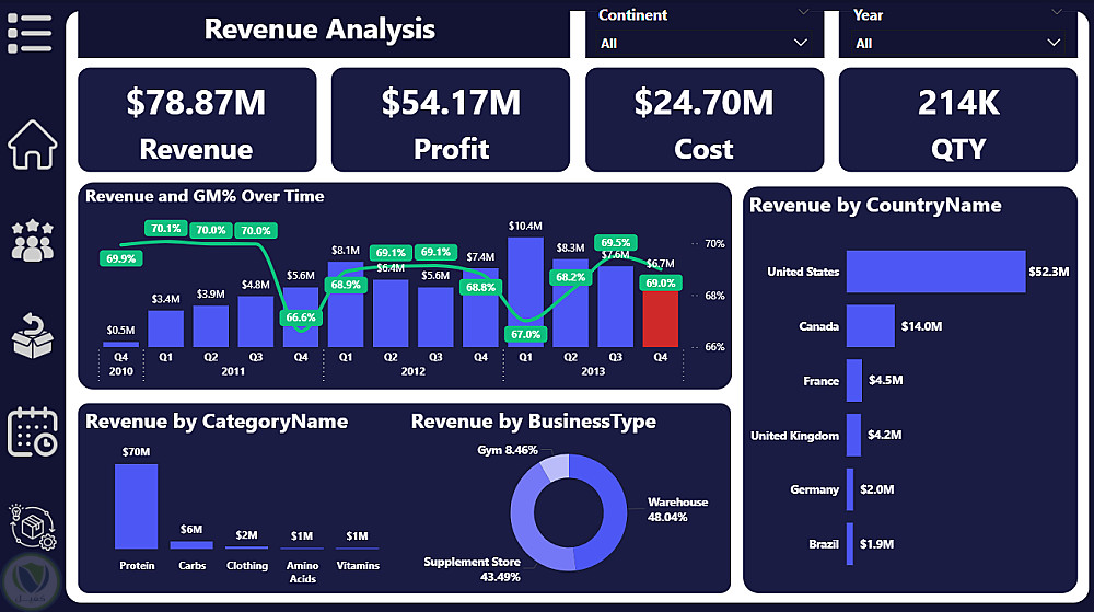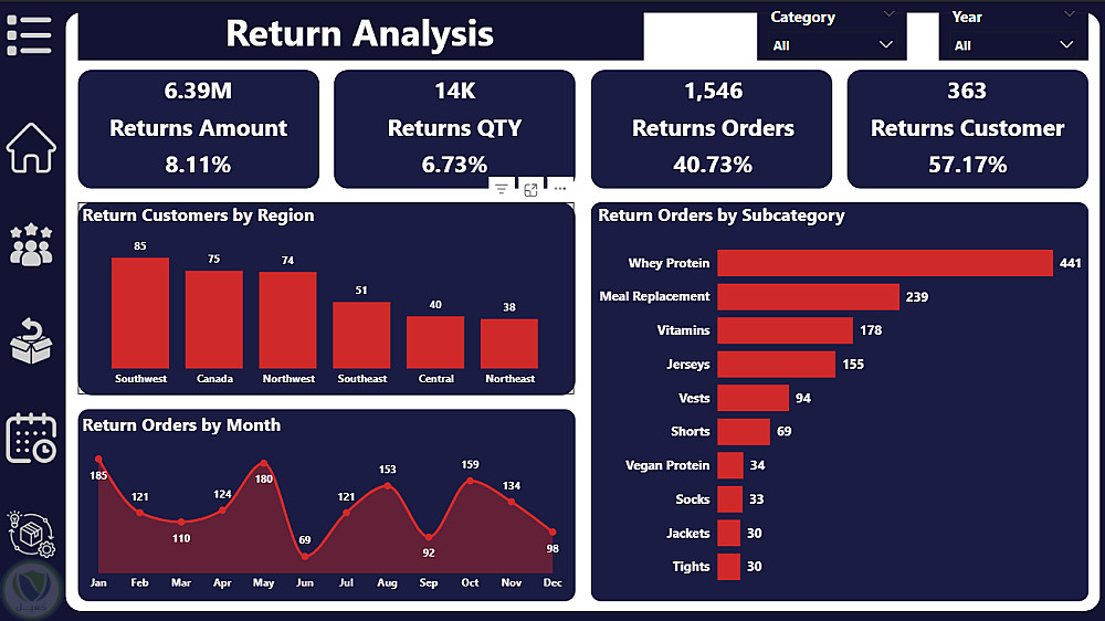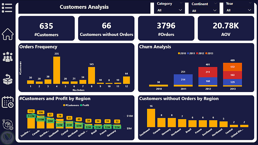 -حساب مؤشرات مثل: إجمالي الإيرادات، معدل النمو الشهري، ومتوسط الإيراد لكل عميل.