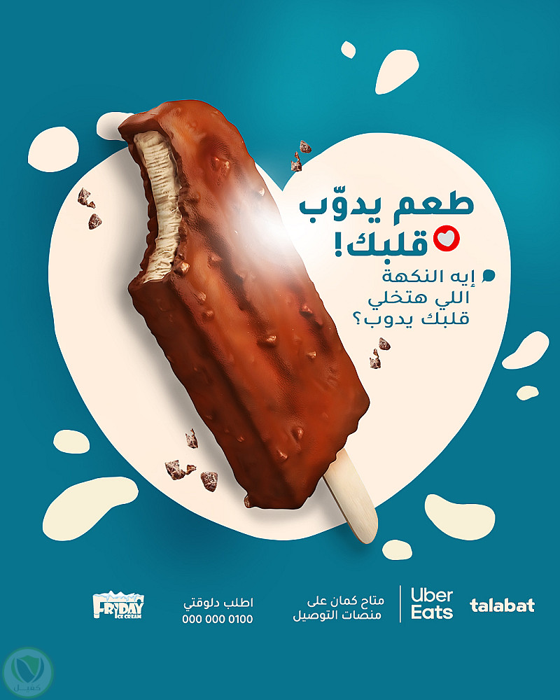 التصميم دا جزء من حملة تعريفية بمنتج آيس كريم “Friday” بعد توفره في المحلات، وكان الهدف الإعلان عن توفره كمان على تطبيقات توصيل الأكل.