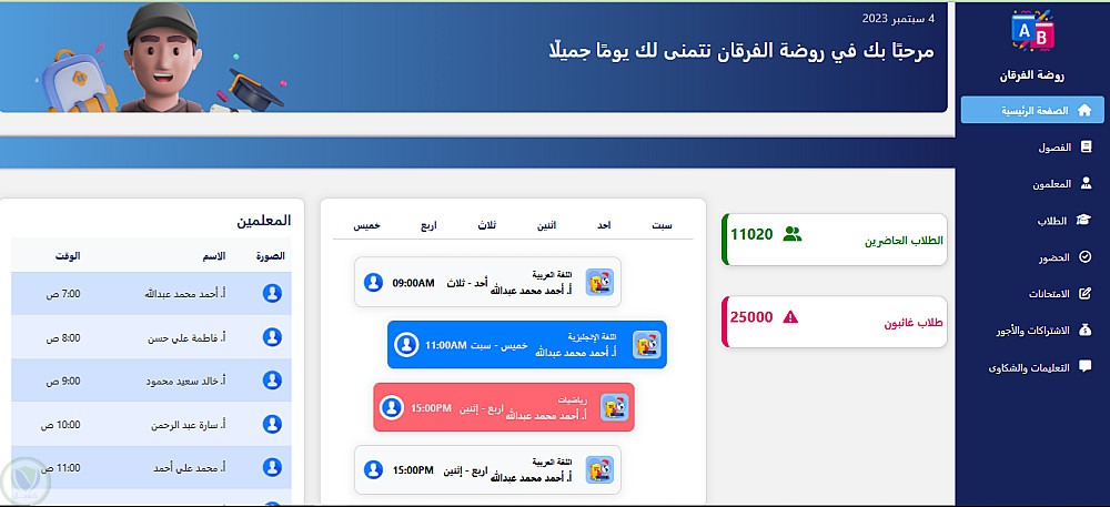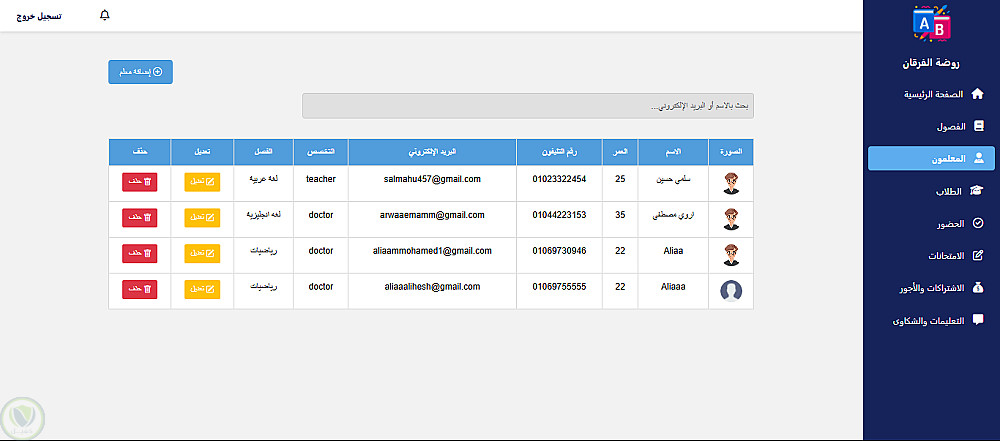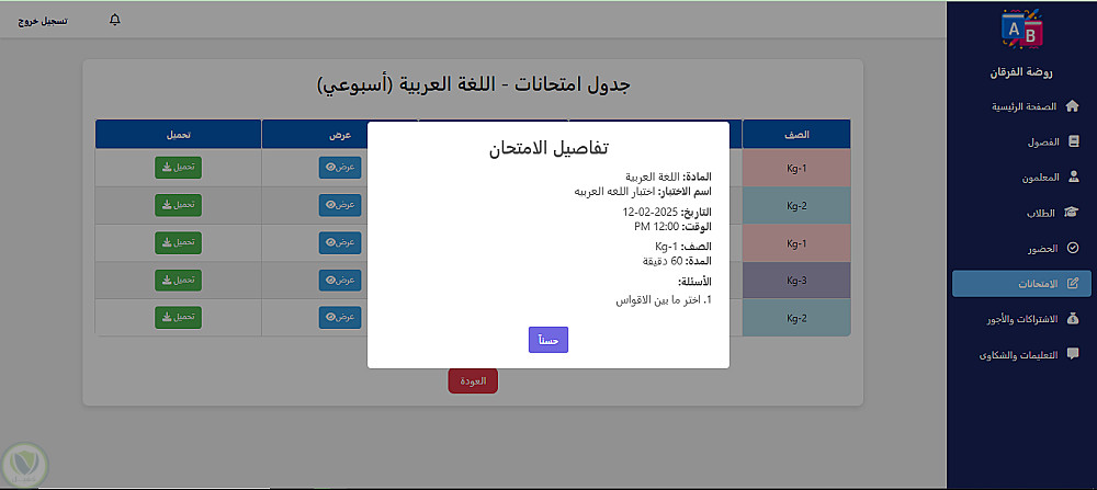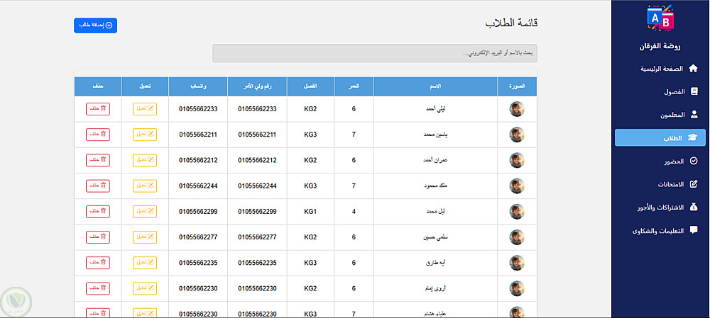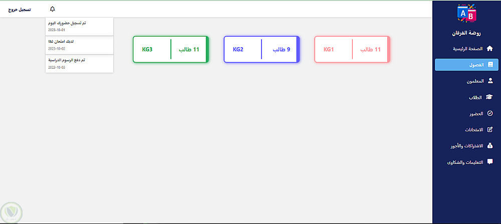هذا الموقع يسمح لاى حضانه ان تعرض به وتدير حضانتها يوجد بيه اداره للادمن واضافه المعلمين والطلاب المتاحين وايضا اداره للمعلم من حيس يحدد الغياب والحضور للطلبه بالفصل الخاص له ويضيف اليهم امتحانات وتنزيلها بخاصيه PDF