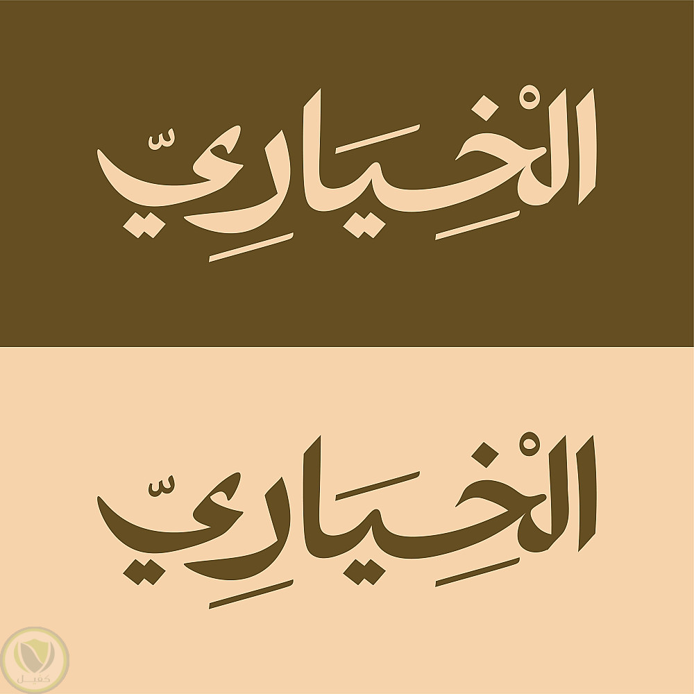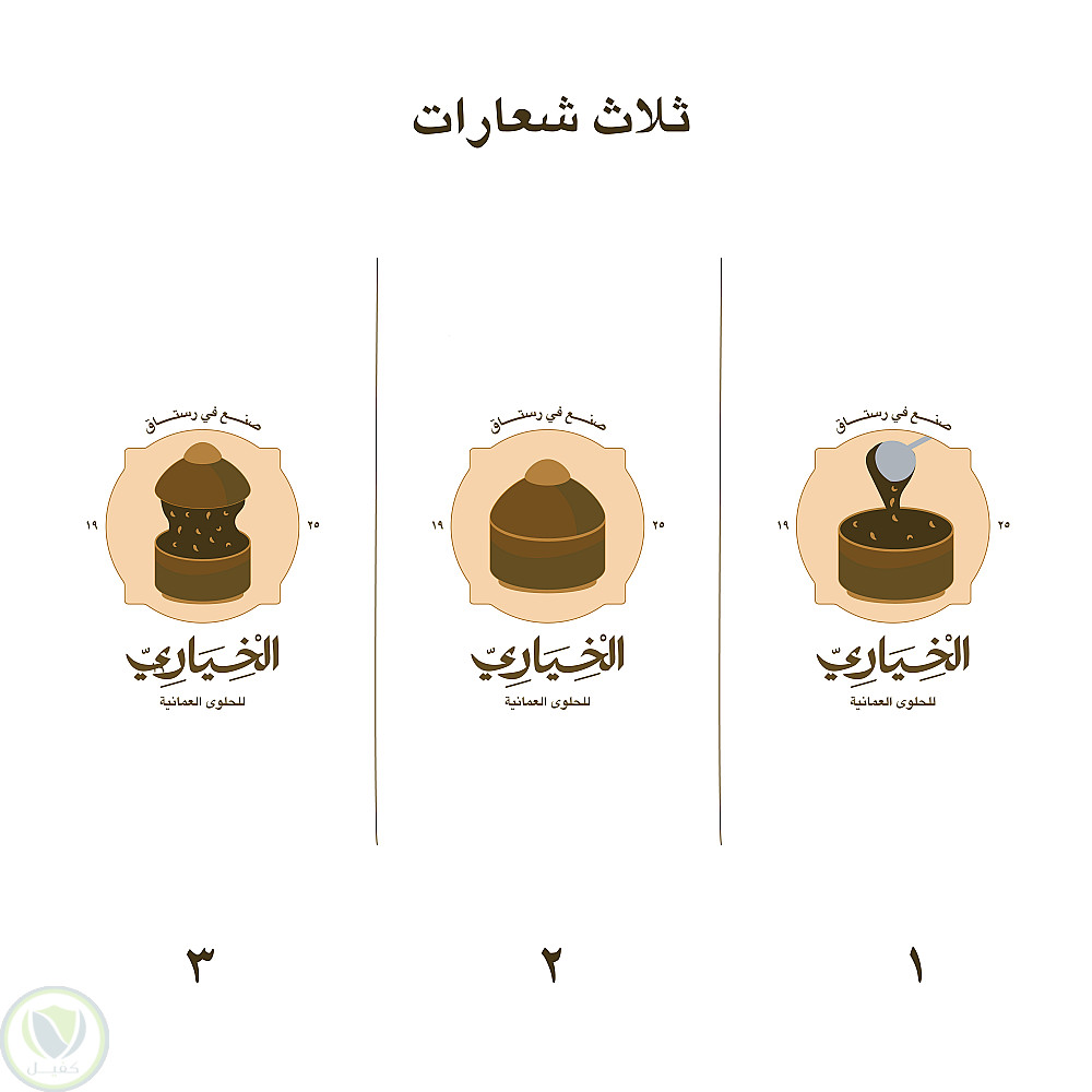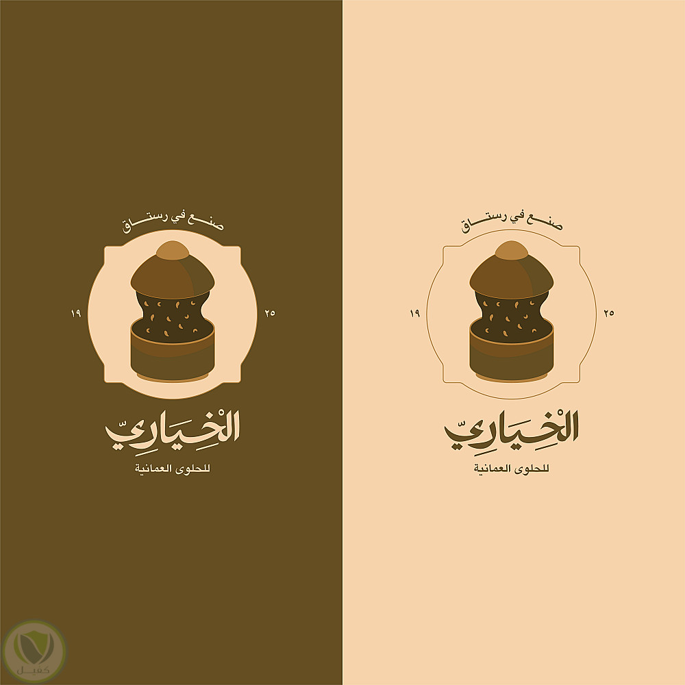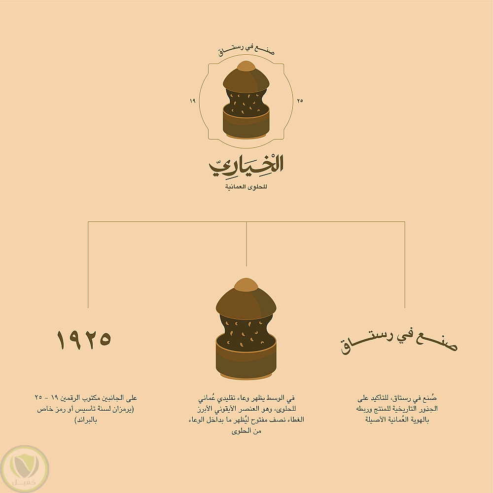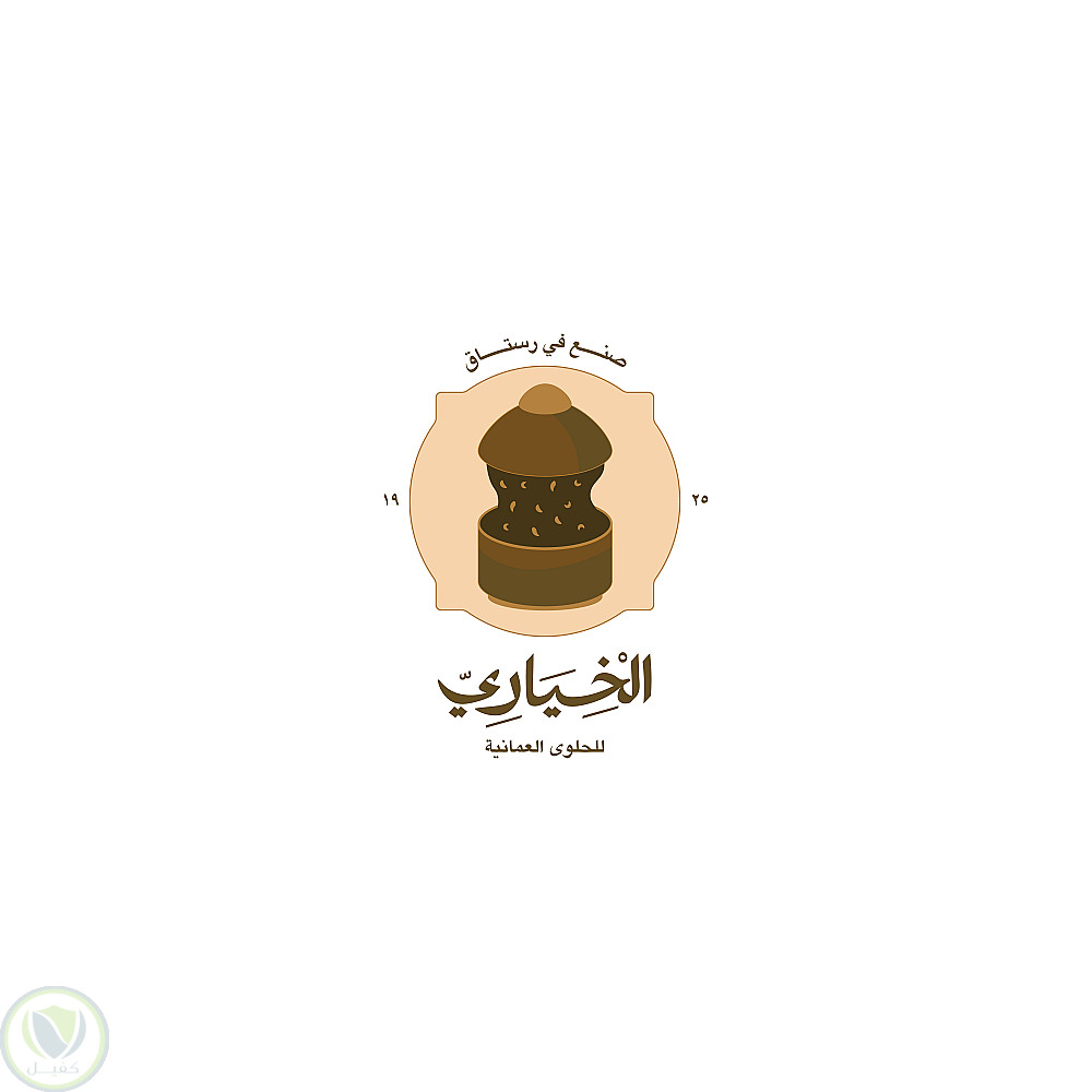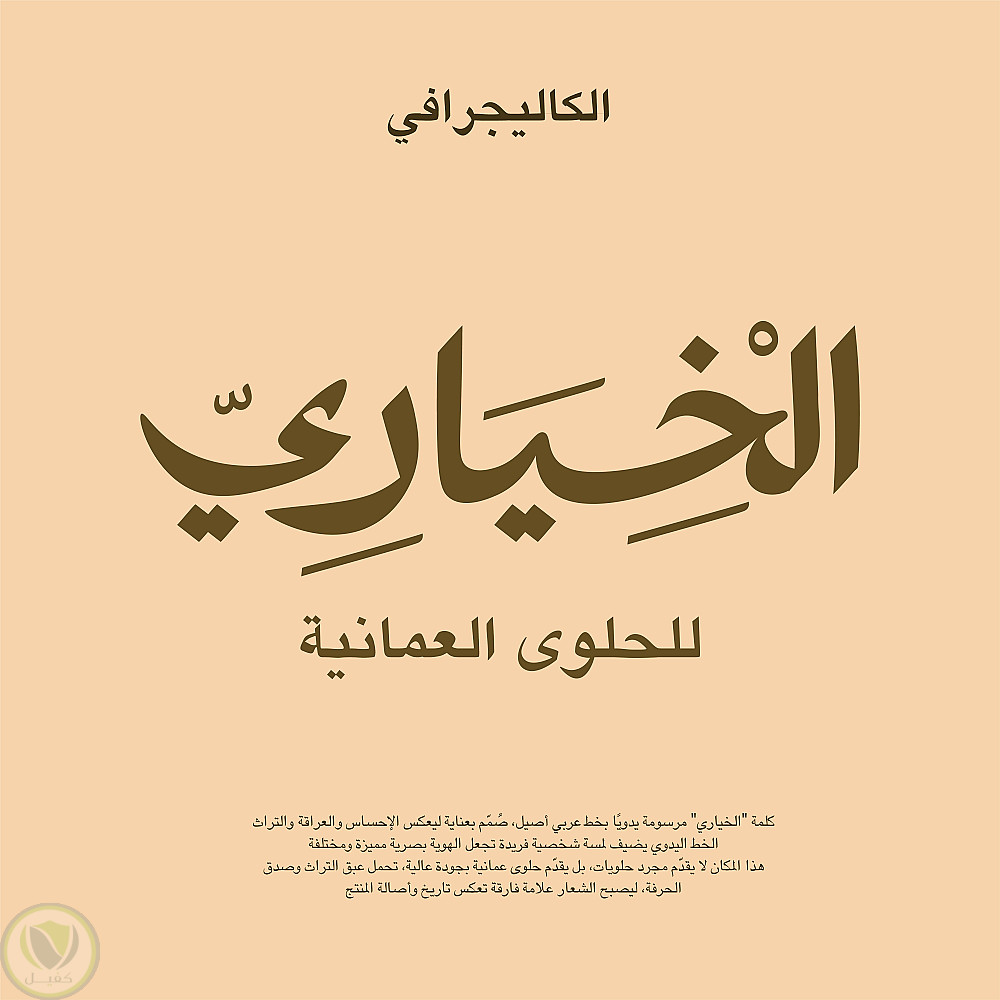 وكلمة الخياري مكتوبة بخط عربي يدوي بيضيف لمسة شخصية تعكس العراقة والهوية البصرية العُمانية.