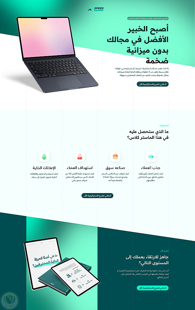 عملت على تصميم واجهة لموقع SPEED، وهو موقع موجه لمقدمي الخدمات الاستشارية، التدريبية، وأصحاب الوكالات. الفكرة الأساسية للموقع هي إبراز نظام بسيط مكوّن من 5 خطوات يساعد المستخدمين على زيادة المبيعات وجذب المزيد من العملاء المحتملين بسهولة.