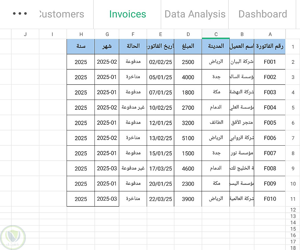 بيانات مدخلة في اكسل تم معالجتها وتحليلها وعمل التقرير