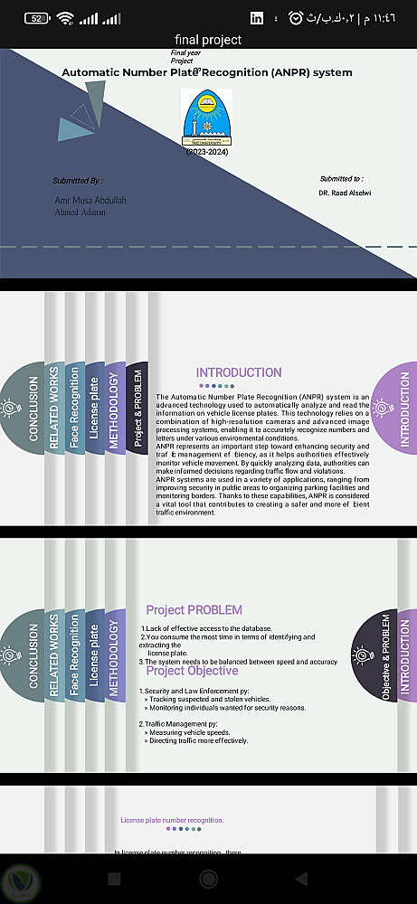 عرض تقديمي لمشروع تخرج والصور المرفقة جزء من الملف