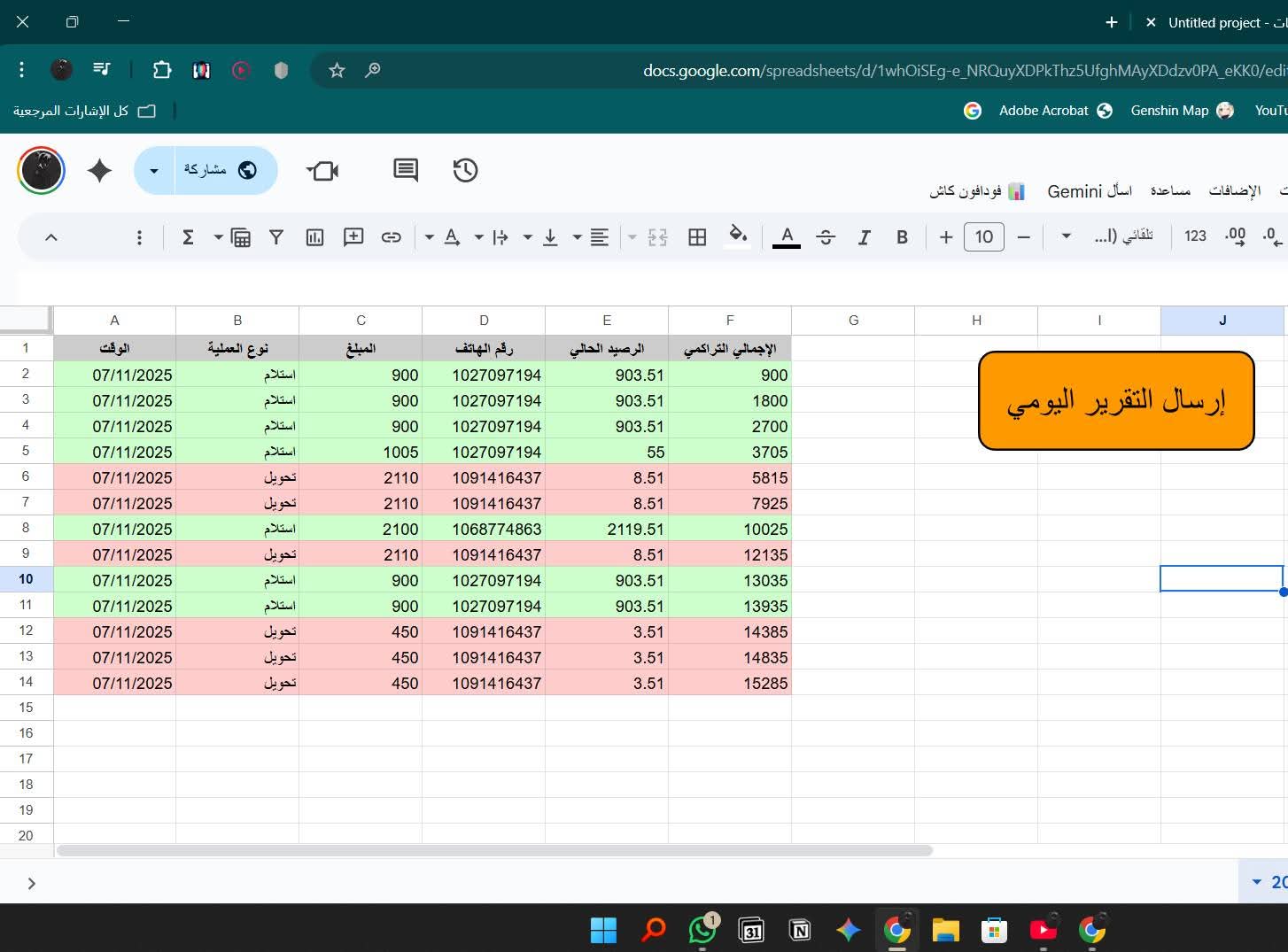 مطلوب مستقل لعمل نظام قراءة رسائل فودافون كاش وربطها بجوجل شيت
