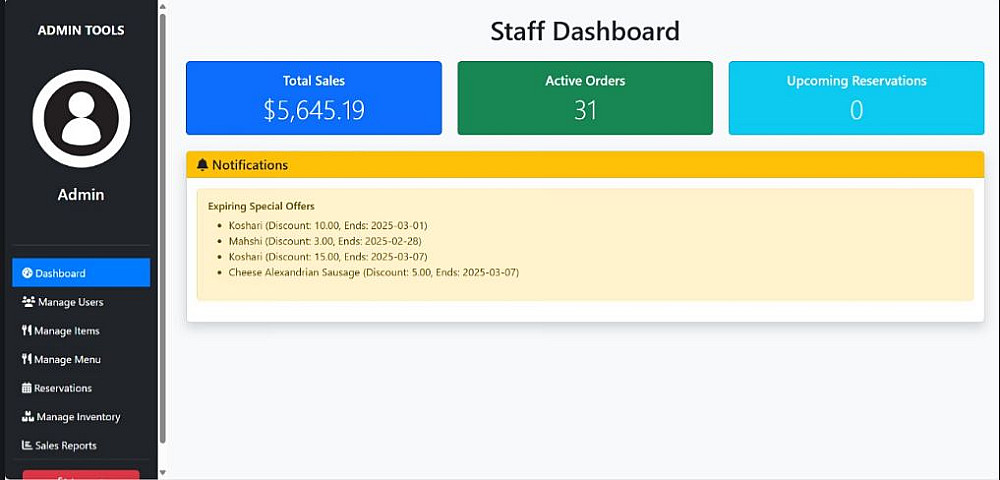 واجهة إدارة للمسؤول لتحديث المعلومات والمنتجات.
