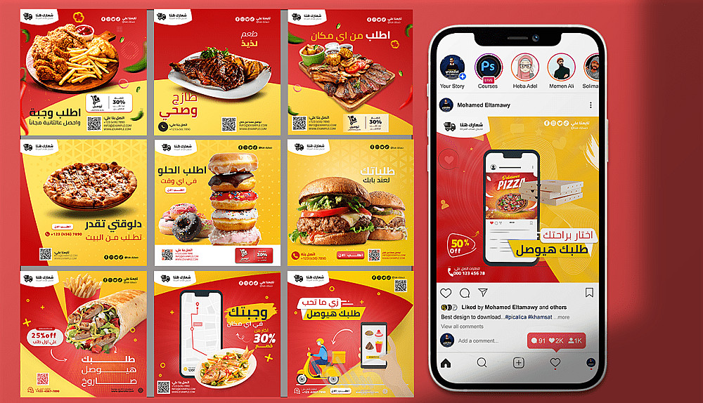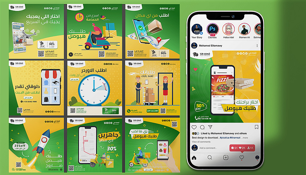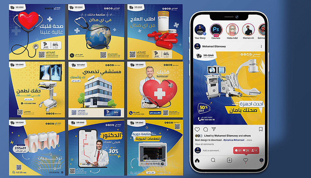 2- التصميم بالمقاسات المختلفة التي تتناسب مع منصات السوشيال ميديا