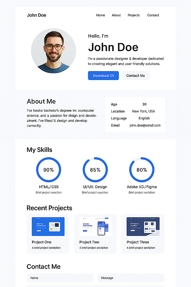 سأقوم بتصميم موقع ويب بورتفوليو شخصي متكامل يساعدك على إبراز قدراتك وخبراتك بأسلوب احترافي ومتجاوب مع جميع الأجهزة (كمبيوتر - موبايل - تابلت).