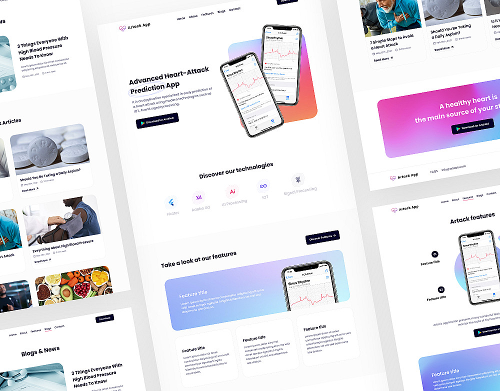 - مواقع ويب (صفحة رئيسية، صفحات داخلية، لوحات تحكم).