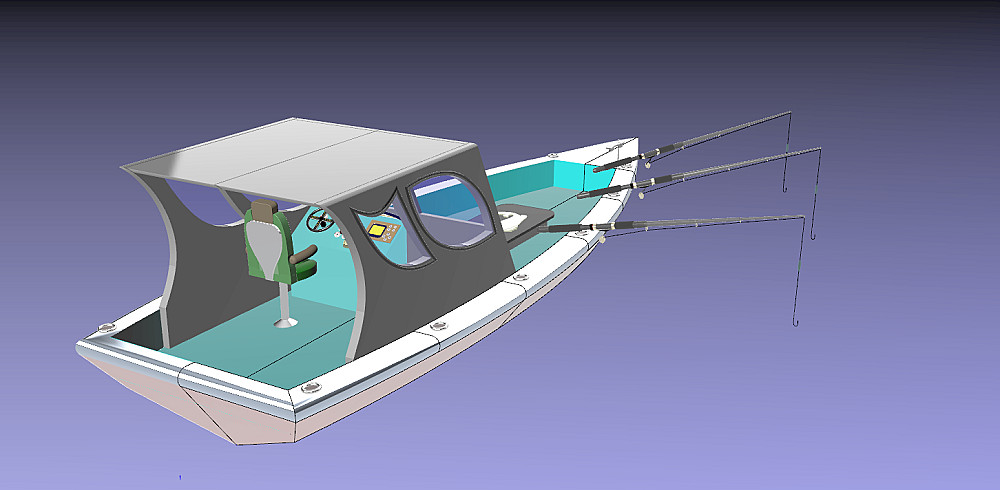 تصميم كامل أو جزئي لقارب، يخت، سفينة صغيرة أو هيكل عائم.