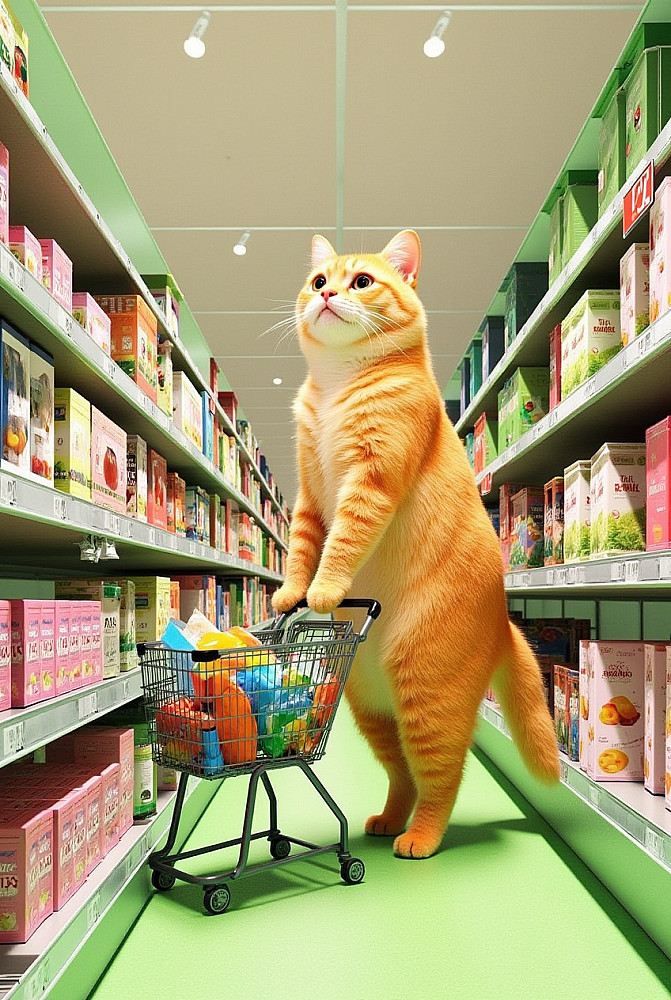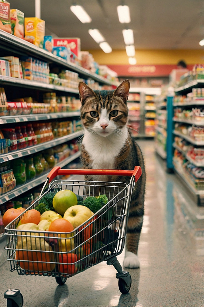 قطة ظريفة تقوم بالتسوق