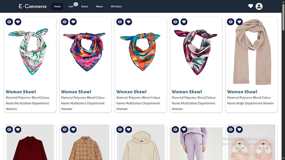 سأقوم بتطوير متجر إلكتروني باستخدام React وVite وTailwind وAxios يشمل: