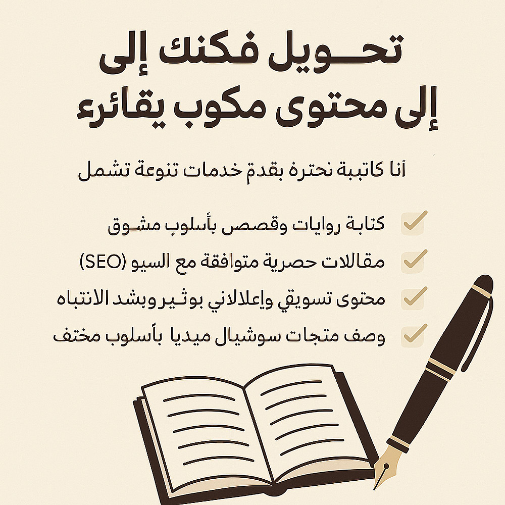 🎯 اطلب الخدمة الآن… ودعني أكتب لك محتوى يتحدث عنك بصدق واحترافية.