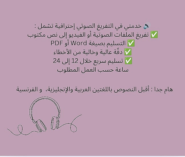 📝 أقدّم خدمة تفريغ صوتي دقيقة من الصوت أو الفيديو إلى نص مكتوب باحترافية وبـ3 لغات (العربية – الفرنسية – الإنجليزية).