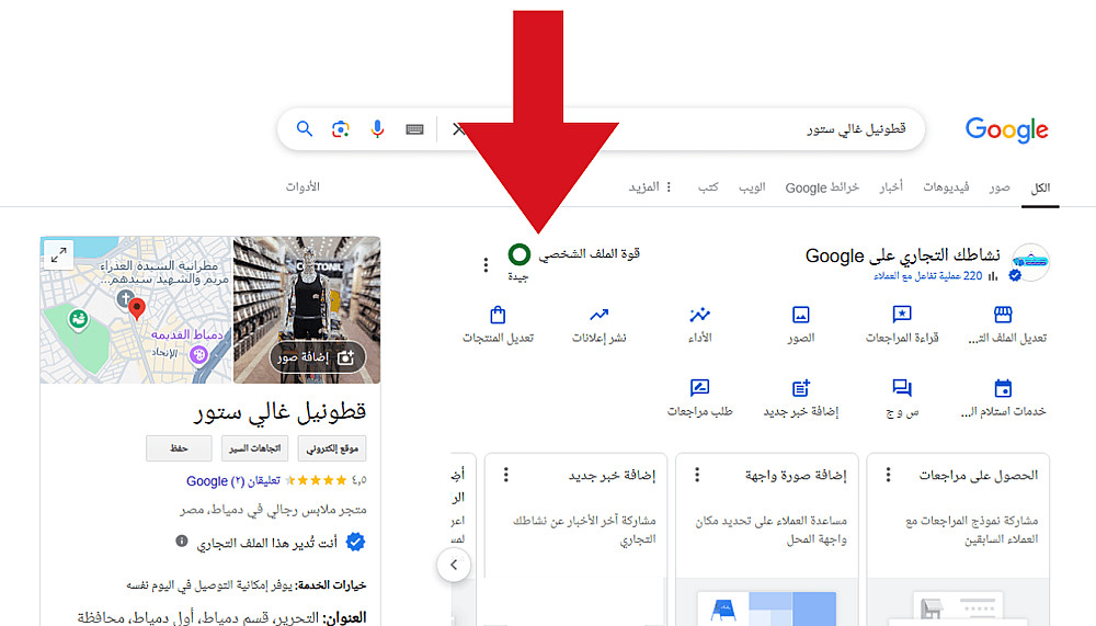 ستحصل على إضافة ملف نشاطك التجاري على خرائط جوجل، وهو ما يمنح نشاطك التجاري فرصة الظهور في نتائج البحث عندما يبحث العملاء المحتملون عن منتجات او خدمات شبيهة بما تقدمه، ولتحظى بالمزيد من الفرص والتفاعل مع العملاء او لترفع ترتيبك في نتائج البحث (راجع تطوير الخدمة).