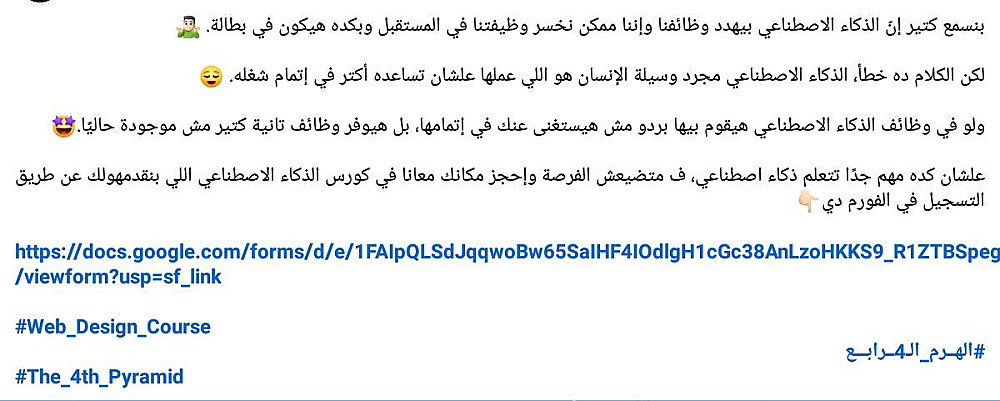 •المنشورات باللغة العربية أو اللهجة المصرية حسب اختياركم وحسب نوع المحتوى وطبيعة المجال