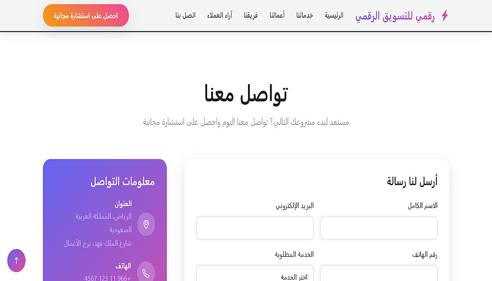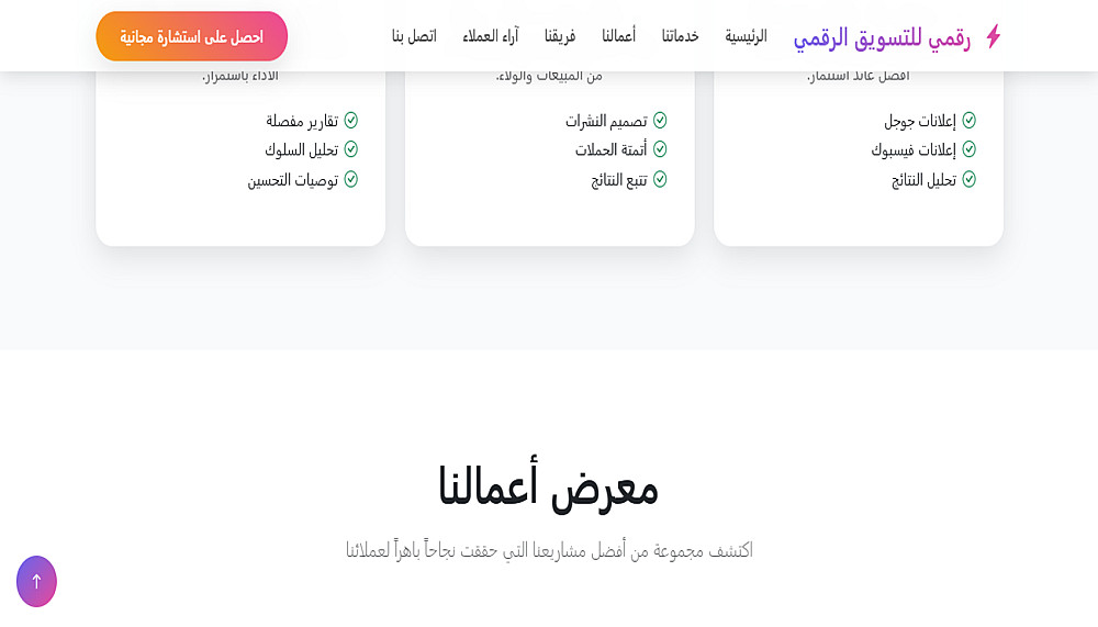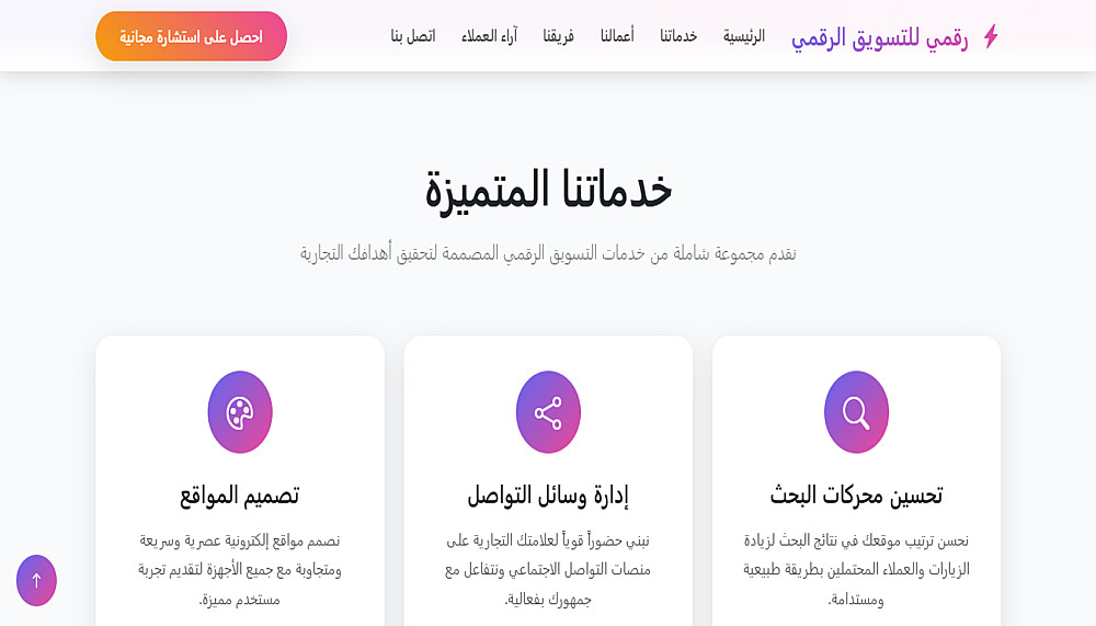 صفحة هبوط عربية أنيقة لوكالة تسويق رقمي