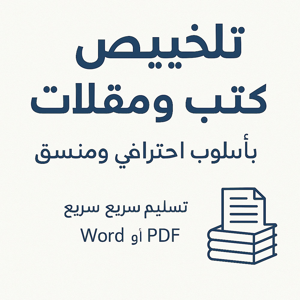 أقدم لكِ خدمة تلخيص احترافية للكتب، المقالات، والمحتوى الدراسي، بلغة واضحة ومنظمة تناسب الطلاب والباحثين وكل من يريد الاستفادة من وقته.