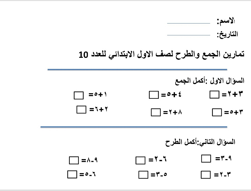 أصمم 4أوراق تعليمية ترفيهية مناسبة للأطفال تحتوي علي تمارين متنوعة في الجمع والطرح في التوصيل أو التلوين حسب ما يحدده ال