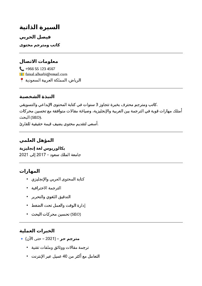كتابة أو تحسين سيرة ذاتية (CV) احترافية باللغة العربية أو الإنجليزية