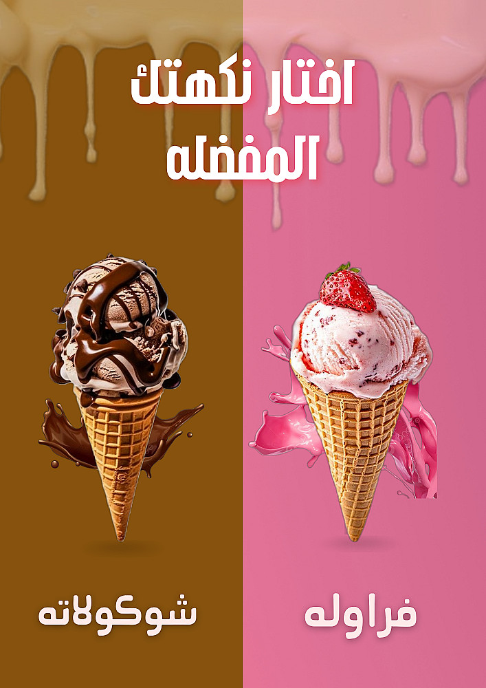 تصميم نشرة اعلانيه عن المنتج وتوضيح الاختلاف بين المنتج في الأطعم بالتصميم