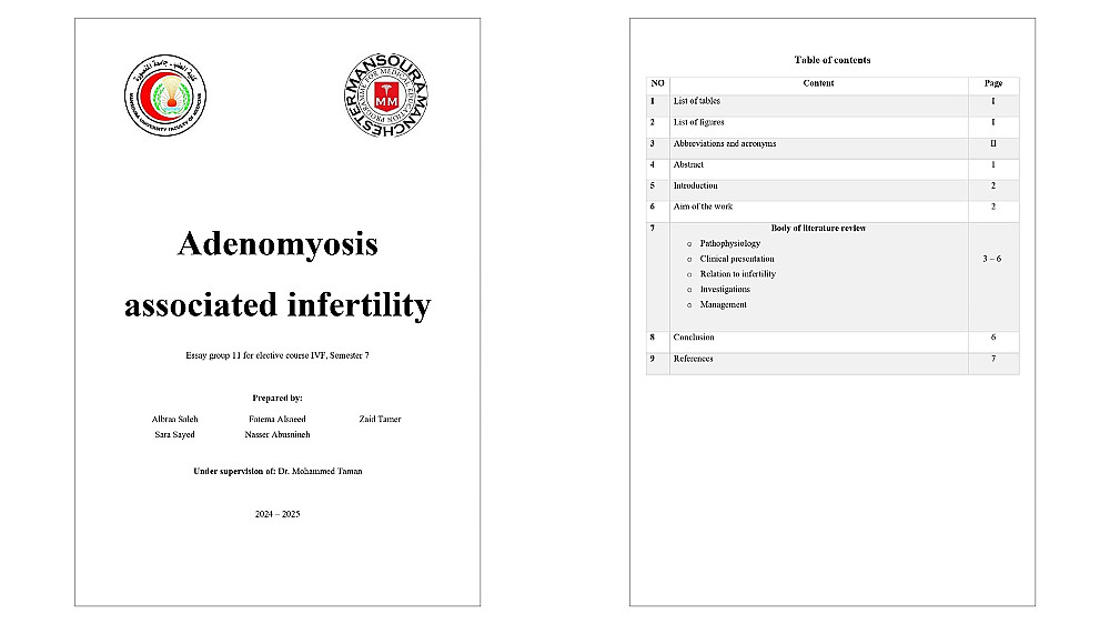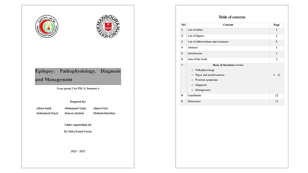 بإذن الله تعالى، سوف تتسلم مني ملفا منسقا وعالي الجودة متمثلا في صفحات منسقة يمكن وضعها في مقدمة المشروع الأكاديمي، يحتوي على صفحة الغلاف وعلى جداول المحتويات وقوائم الجداول والصور والاختصارات على النحو الظاهر في الصور، وذلك على حسب المحتوى العلمي للمقال والذي أنشأته بنفسك أو بالتعاون مع زملائك، مهمتي هي تقديم مقدمة منسقة فقط وليس إنشاء المحتوى العلمي.
