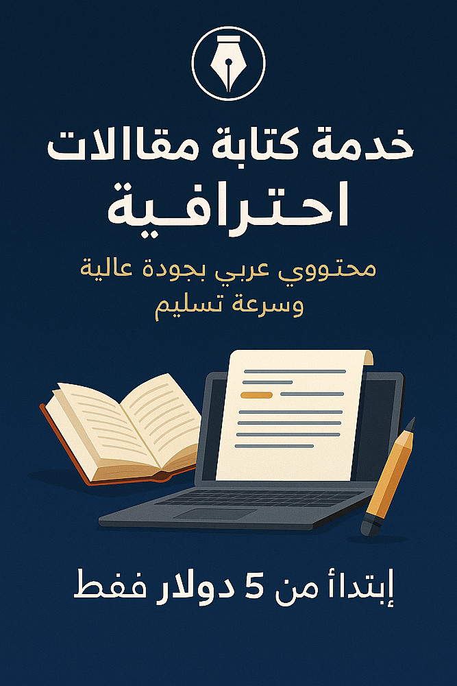 ✍️ أقدم لك خدمة كتابة مقالات عربية أو إنجليزية بجودة احترافية، بأسلوب جذاب وفقرات منسقة وسهلة القراءة.