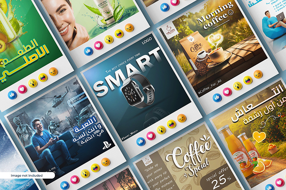 تصميم بوستات احترافية ثابتة (فيسبوك – إنستجرام – تويتر... إلخ)
