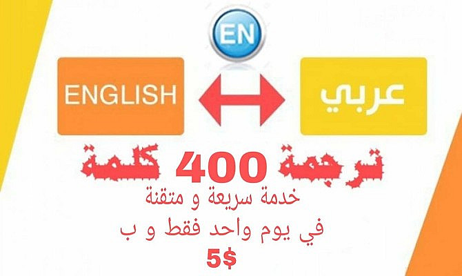 ترجمة المقالات و النصوص المكونة من 400 كلمة من الإنجليزية الى العربية مقابل 5$ في مدة زمنية لا تقل عن 24 ساعة.