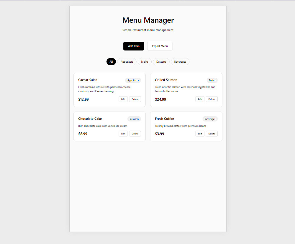 واجهة رئيسية أنيقة لعرض قائمة المشتريات.