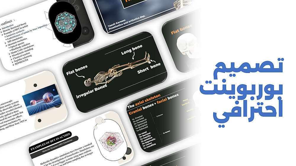 تصميم ملف Powerpoint احترافي باللغتين العربية والأنكليزية لطلاب الجامعات واصحاب المشاريع