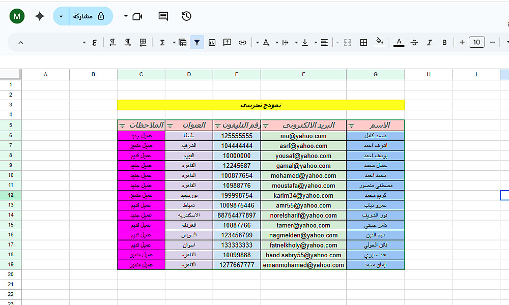 إدخال وتفريغ بيانات في 1000 خلية داخل ملف Excel.