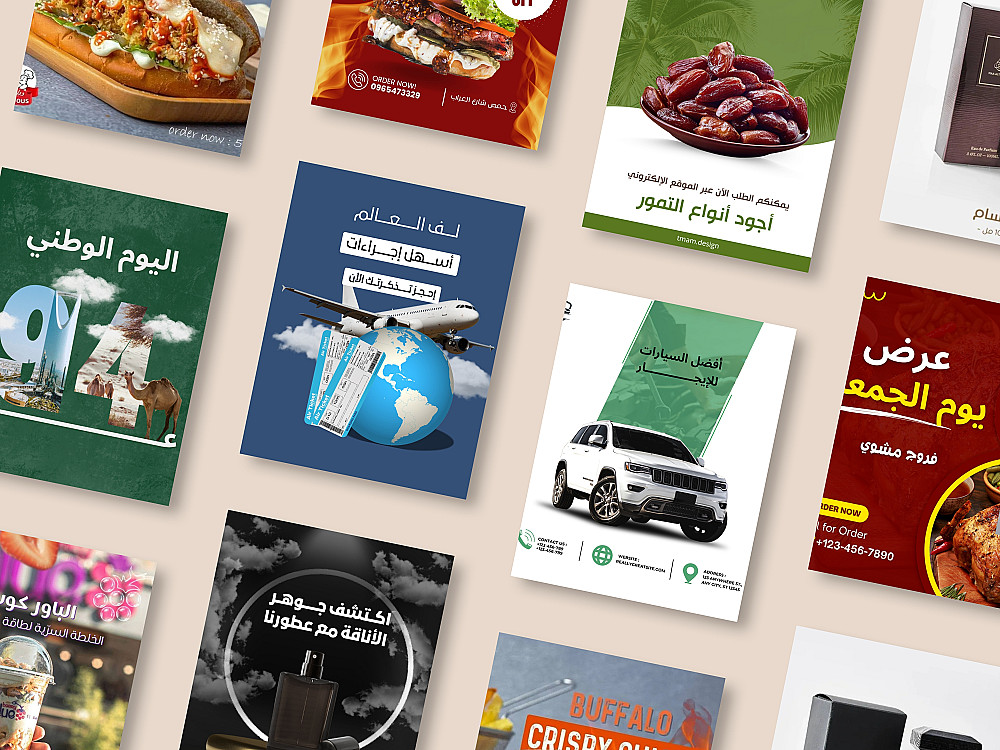 أنا مصمم جرافيك متخصص في تصميم بوستات إبداعية وإعلانات تسويقية وبتنسيقات تناسب جميع منصات التواصل الاجتماعي (Instagram, Facebook, Twitter, TikTok...).