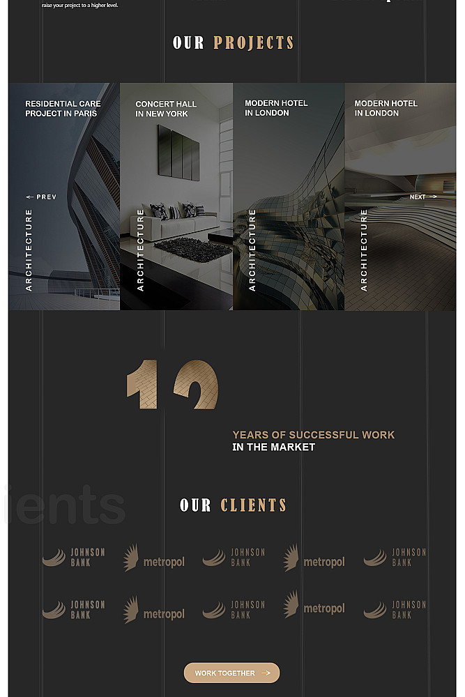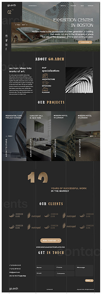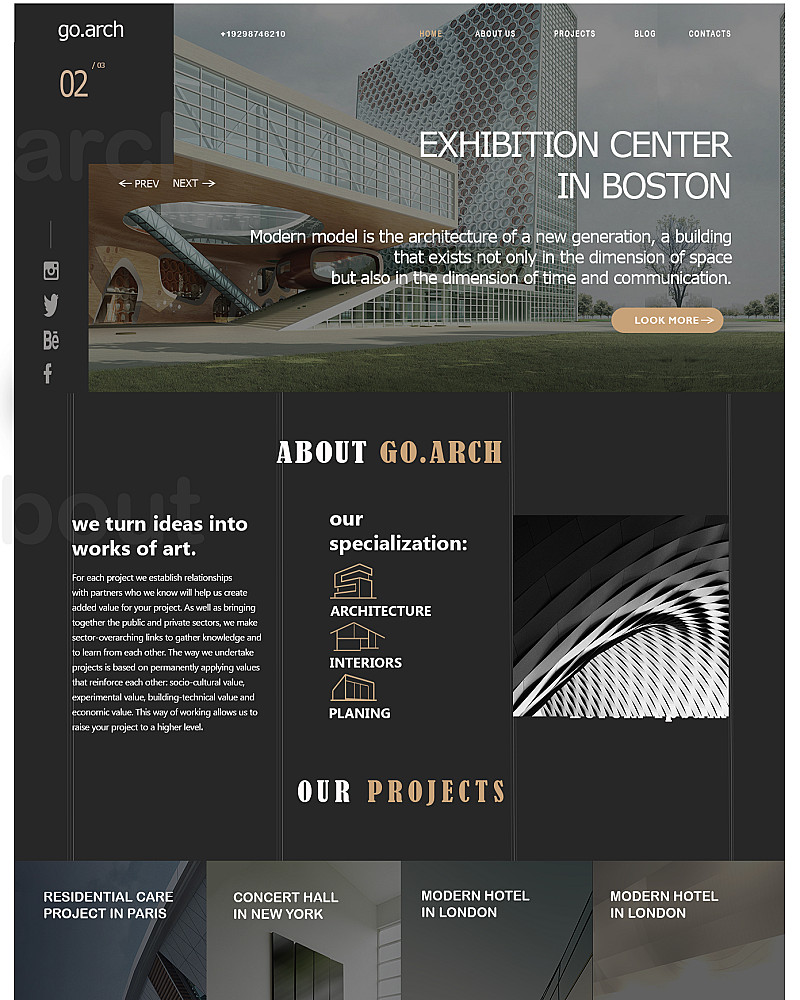 المثال الموضح هو لصفحة هبوط لمكتب هندسي (go.arch) توضح المشاريع نبذة عن الشركة، والعملاء وطريقة التواصل.