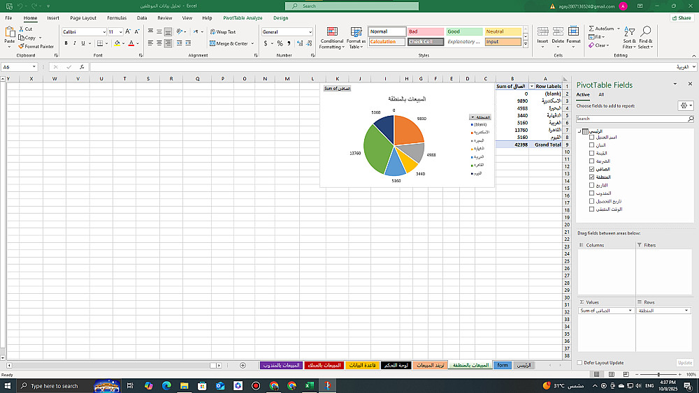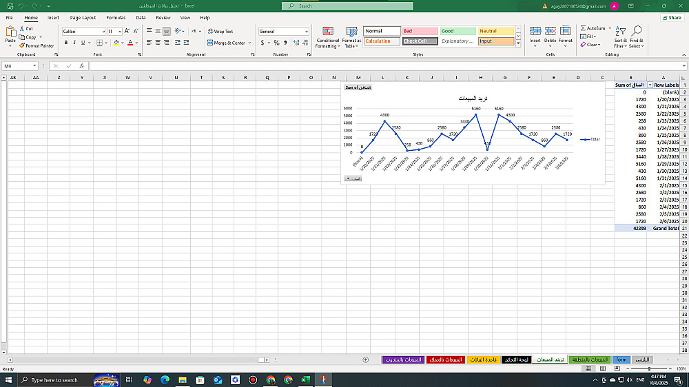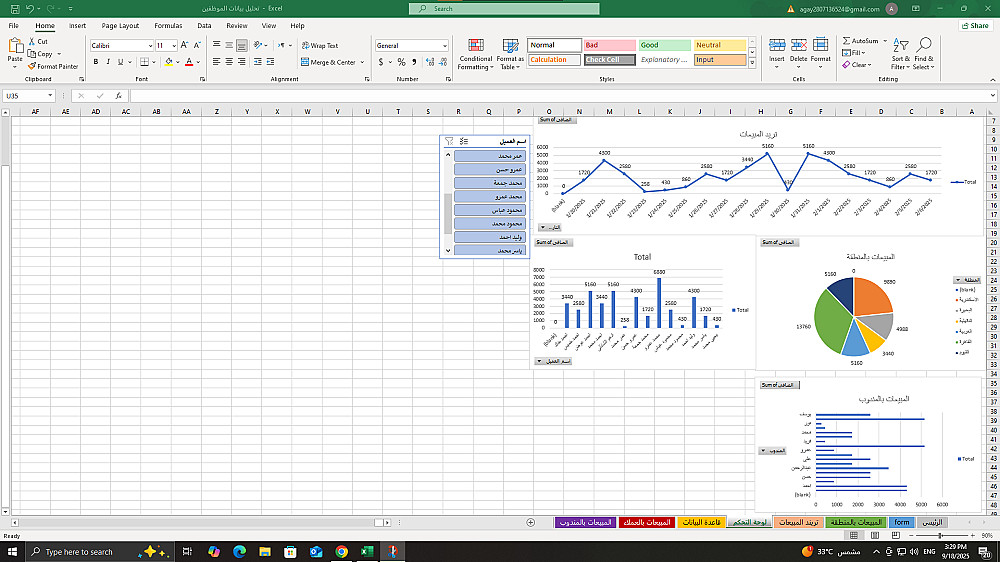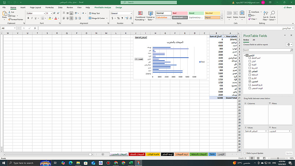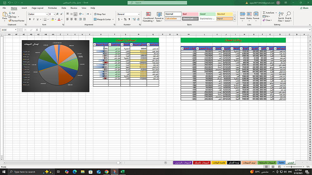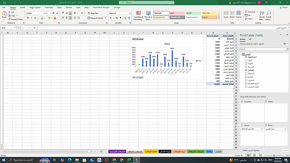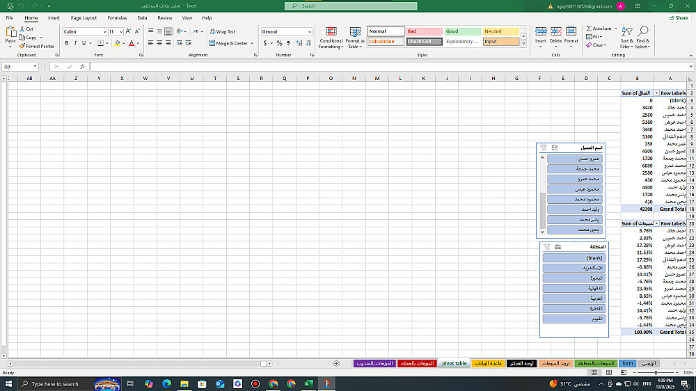 إنشاء وتنسيق جداول Excel مع العمليات الحسابية.