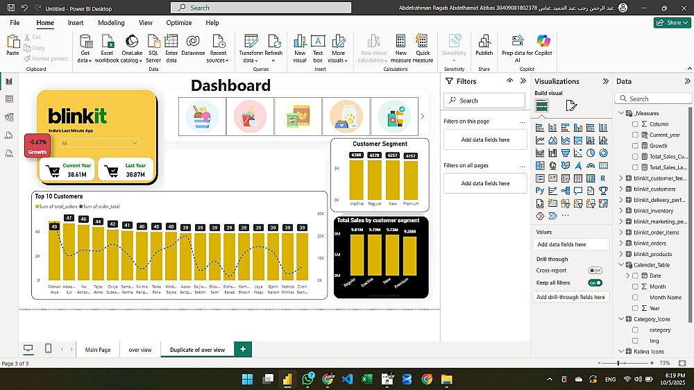 سأقوم بتحليل بياناتك وتصميم لوحة تحكم تفاعلية (Dashboard) باستخدام Power BI تساعدك على اتخاذ قرارات دقيقة وتعطيك رؤية شاملة لأداء عملك.