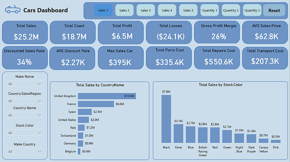 4-إنشاء ملف اكسل مكون من عدد 1صفحة بها داش بورد تتكون من (5) رسومات في الصفحة الواحدة مع عدد (Cards (2