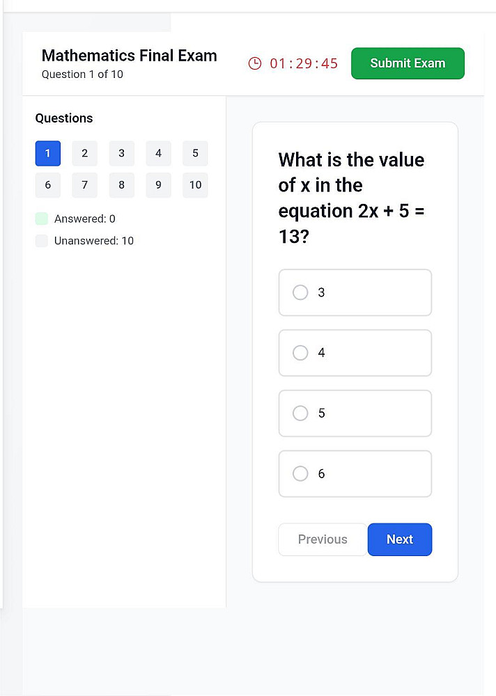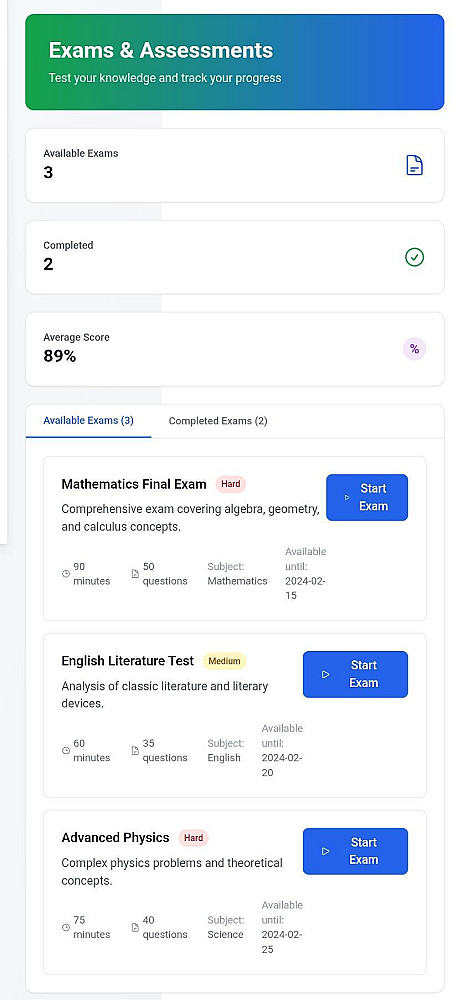 4.نظام امتحانات تفاعلي مع تصحيح تلقائي للنتائج.