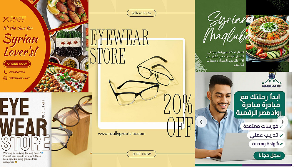 حجم مناسب لكل منصة (Instagram - Facebook - Story - Poster...).